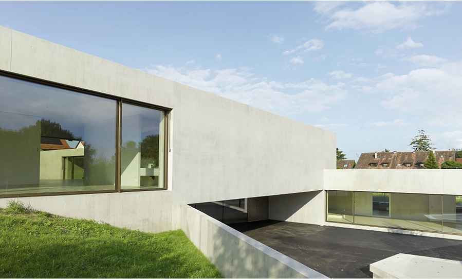 朝向不同方向的大型采光窗更加強(qiáng)調(diào)了建筑的自然品質(zhì),在建筑選址中,建筑師更多的考慮了視覺關(guān)系。建筑在室內(nèi)外均采用了混凝土材料,使之與地形和周邊環(huán)境融為一體。